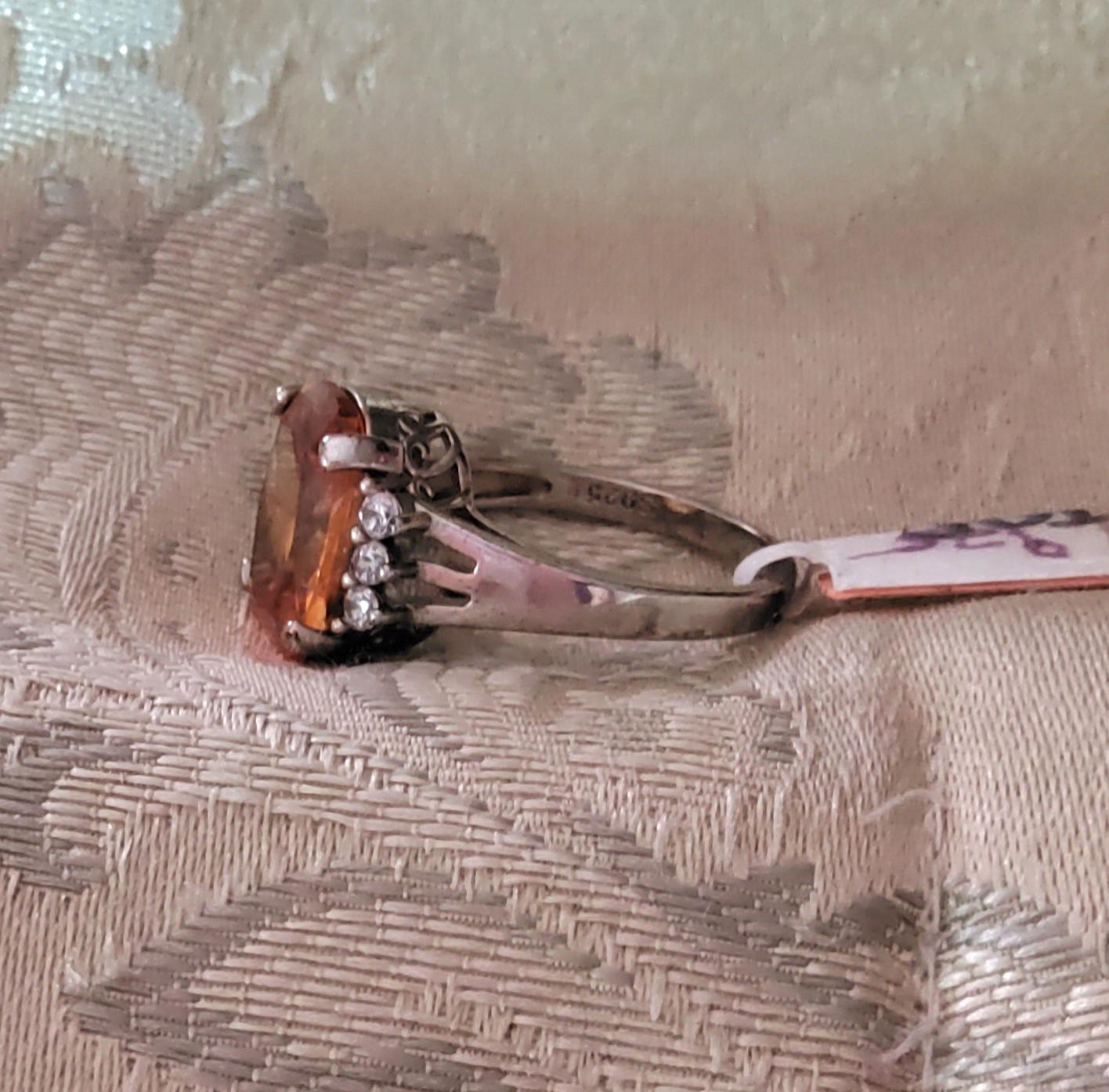 Size 8.5. New sterling silver ring from VV. Sterling silver, stamped. Topaz crystal flanked by three baguette crystals on each side.
