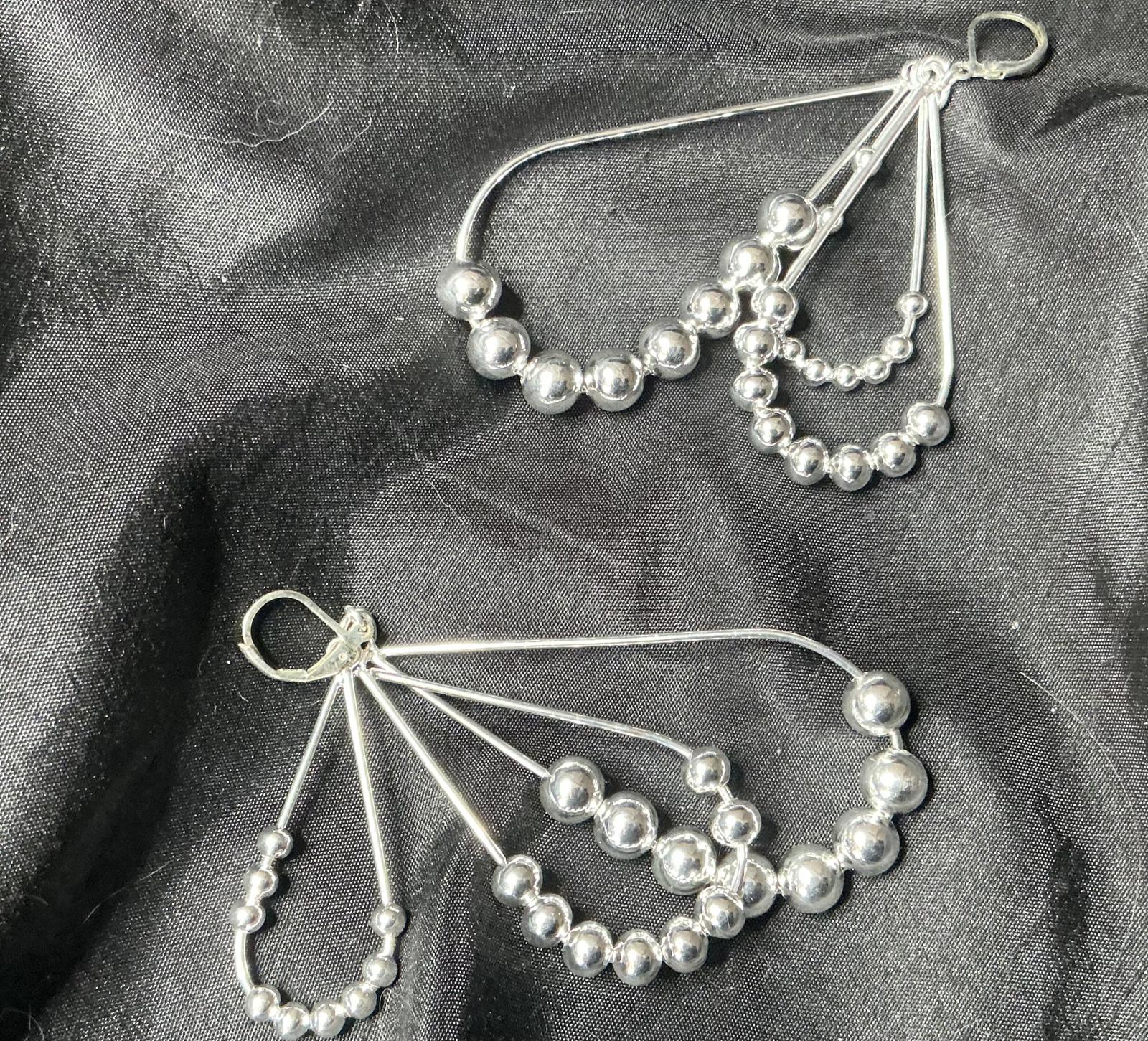 Elevate your accessory game with these stunning sterling silver beaded dangle earrings. Crafted with multiple tiers of gleaming sterling silver beads, they offer a dynamic and eye-catching design perfect for any occasion. They are perfect for both casual and formal wear. The intricate details and unique shape make these earrings a must-have addition to your jewelry collection.